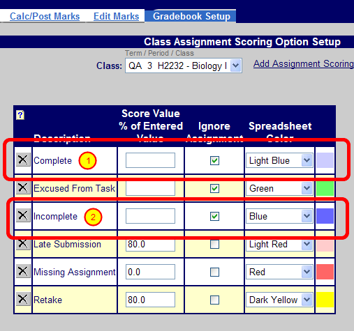As students complete the assignment, enter their grades and remove the Incomplete flag.