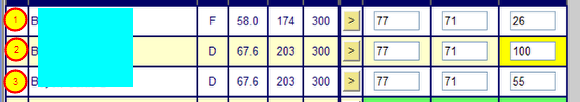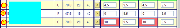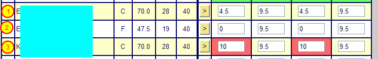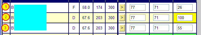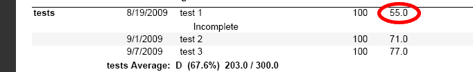 2) Select Incomplete in the Grade by Task or Grade by Student when entering grades. Note that you MUST enter the total number of points possible for the student's grade. (You can use the Fill Down option when entering grades if you wish.) Zangle will then take the percentage that you entered for Incomplete work and apply it correctly (see the overall grade for (2) is the same as for (3). The Yellow indicates that it is missing.