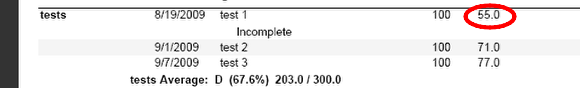 Note: If your eyes glaze over in reading all of this, the simplest implementation of this policy is to pick a value for your lowest test score (eg. 50%) and enter that into your gradebook for those who score lower.