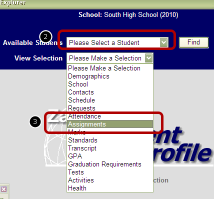 1) From the main Zangle menu, select Student Profile